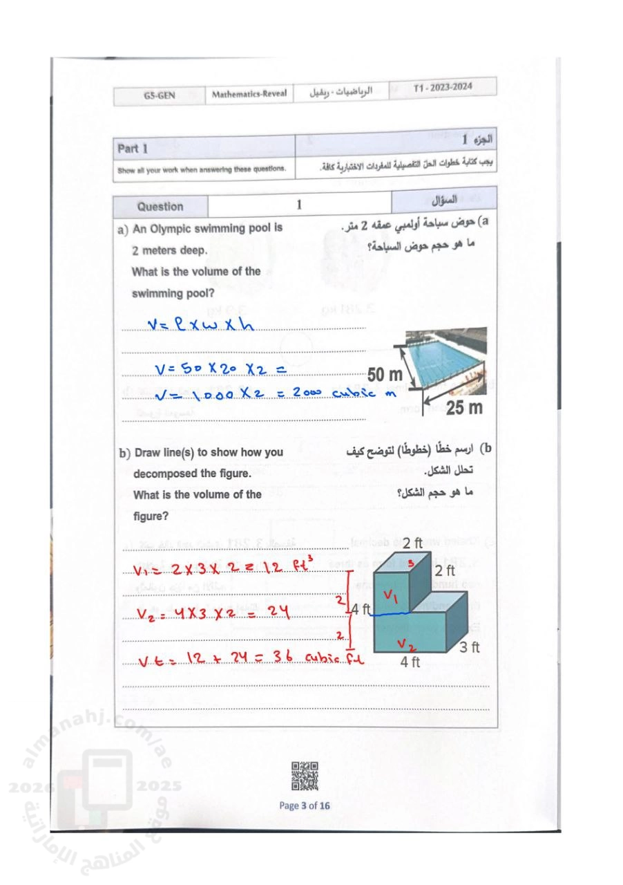 9. الصف الخامس, رياضيات, أسئلة الامتحان النهائي القسم الورقي منهج ريفيل مع الإجابات