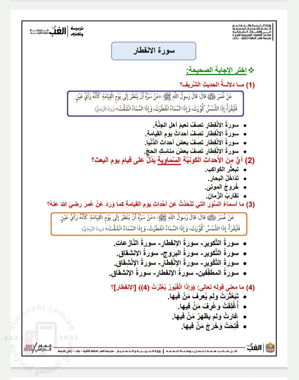 | تنويه: المناهج الإماراتية هو موقع مجاني وغير رسمي ولا يتطلب اشتراك لتحميل الملفات، لذلك يرجى عدم دفع أي مبلغ أو الاشتراك من أجل تحميل الملفات. | |