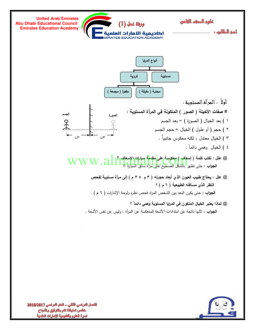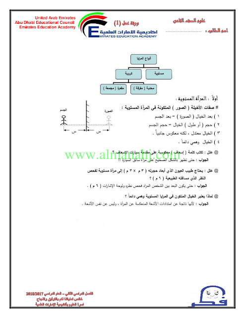 معلومات الملف: الصف الثامن, الفصل الثاني, علوم, 2017-2018, ورقة عمل المرأة المستوية | |||