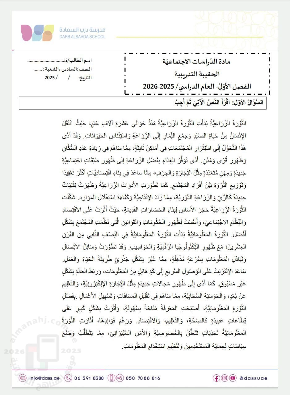 | أنت هنا: موقع المناهج ⇦ المناهج الإماراتية ⇦ الصف السادس ⇦ اجتماعيات ⇦ الفصل الأول ⇦ مذكرات وبنوك |