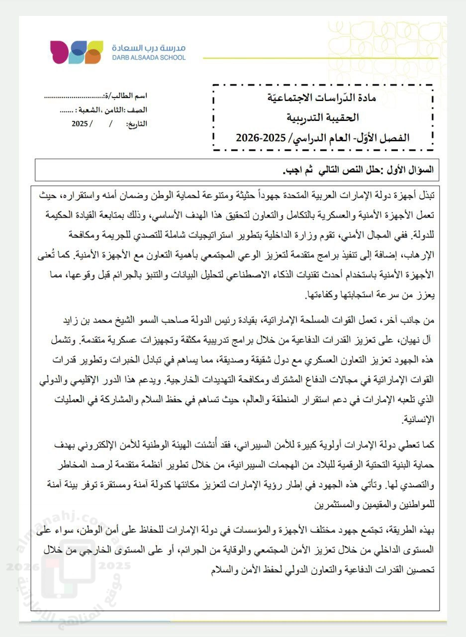 | أهلاً بكم جميعاً طلاباً ومدرسين وأهالي طلبة ومهتمين، في قسم دولة الإمارات ، نحن الآن في الفصل الأول من العام الدراسي 2025/2026 وتاريخ اليوم 2025/11/05 م | |