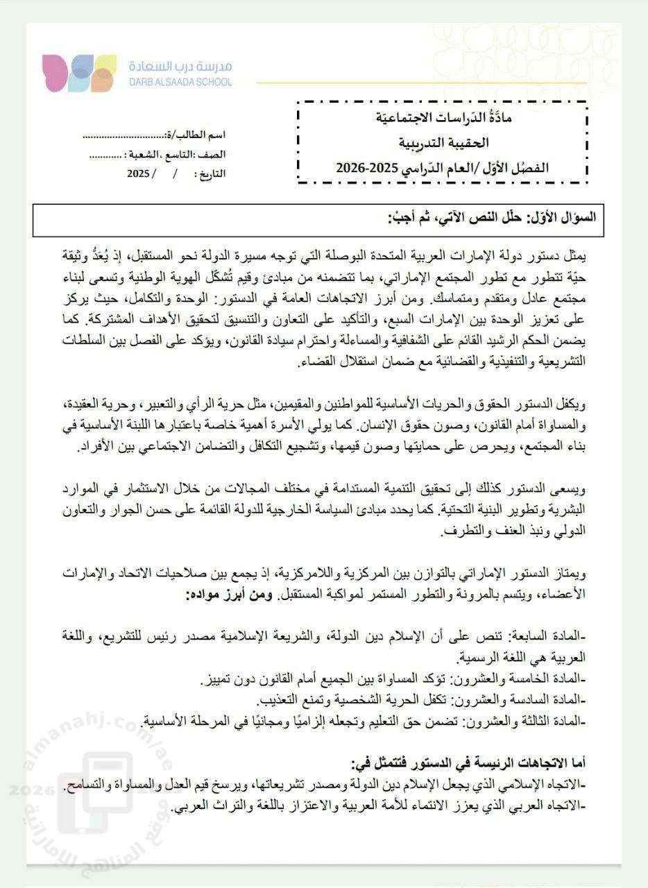 | أهلاً بكم جميعاً طلاباً ومدرسين وأهالي طلبة ومهتمين، في قسم دولة الإمارات ، نحن الآن في الفصل الأول من العام الدراسي 2025/2026 وتاريخ اليوم 2025/11/05 م | |