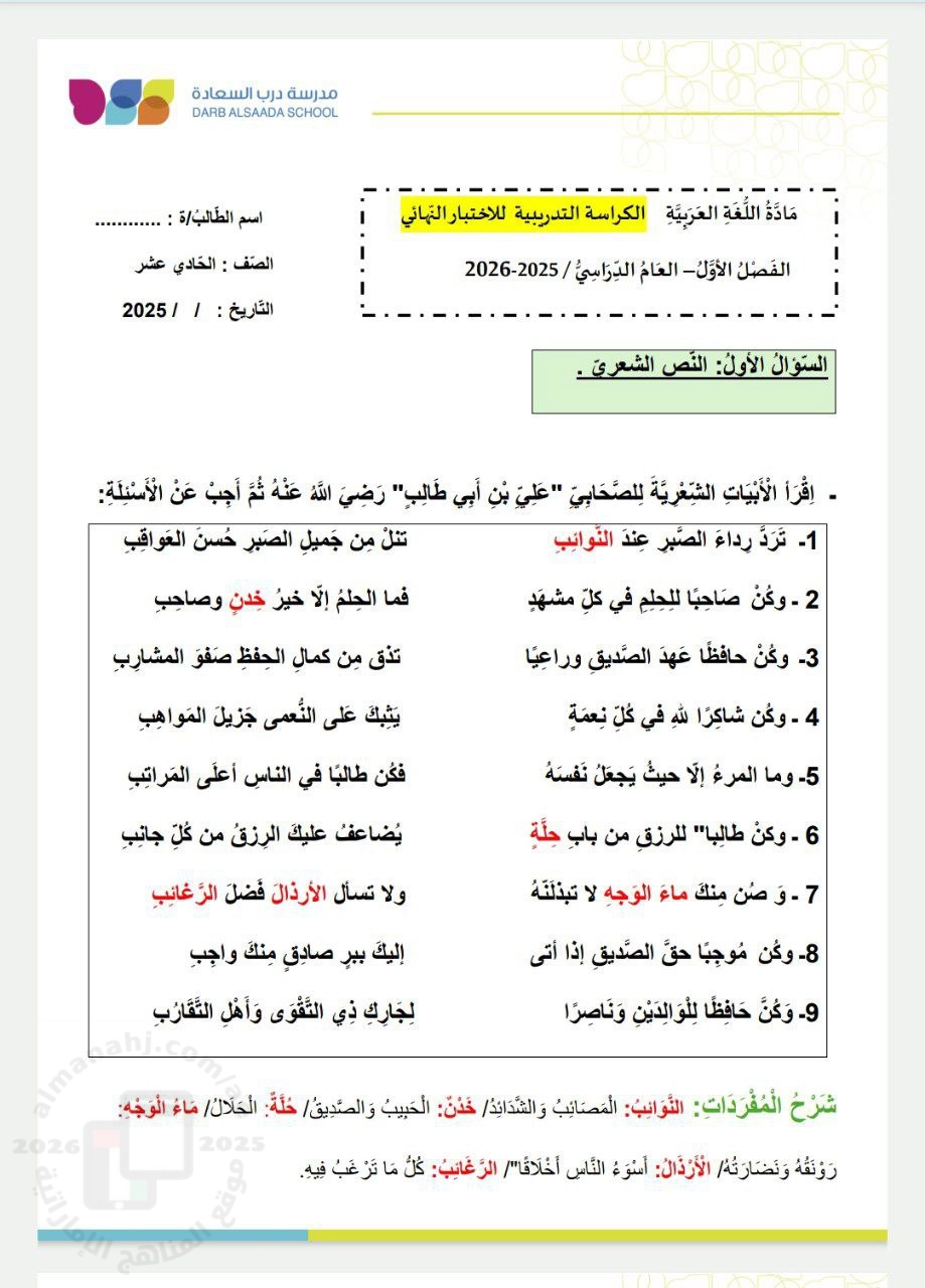 | كراسة تدريبية مراجعة وفق الهيكل الوزاري الجديد - إعداد: مدرسة درب السعادة | ||