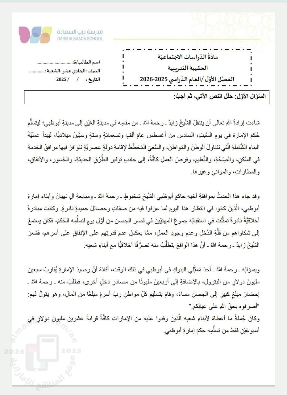 | أهلاً بكم جميعاً طلاباً ومدرسين وأهالي طلبة ومهتمين، في قسم دولة الإمارات ، نحن الآن في الفصل الأول من العام الدراسي 2025/2026 وتاريخ اليوم 2025/11/05 م | |