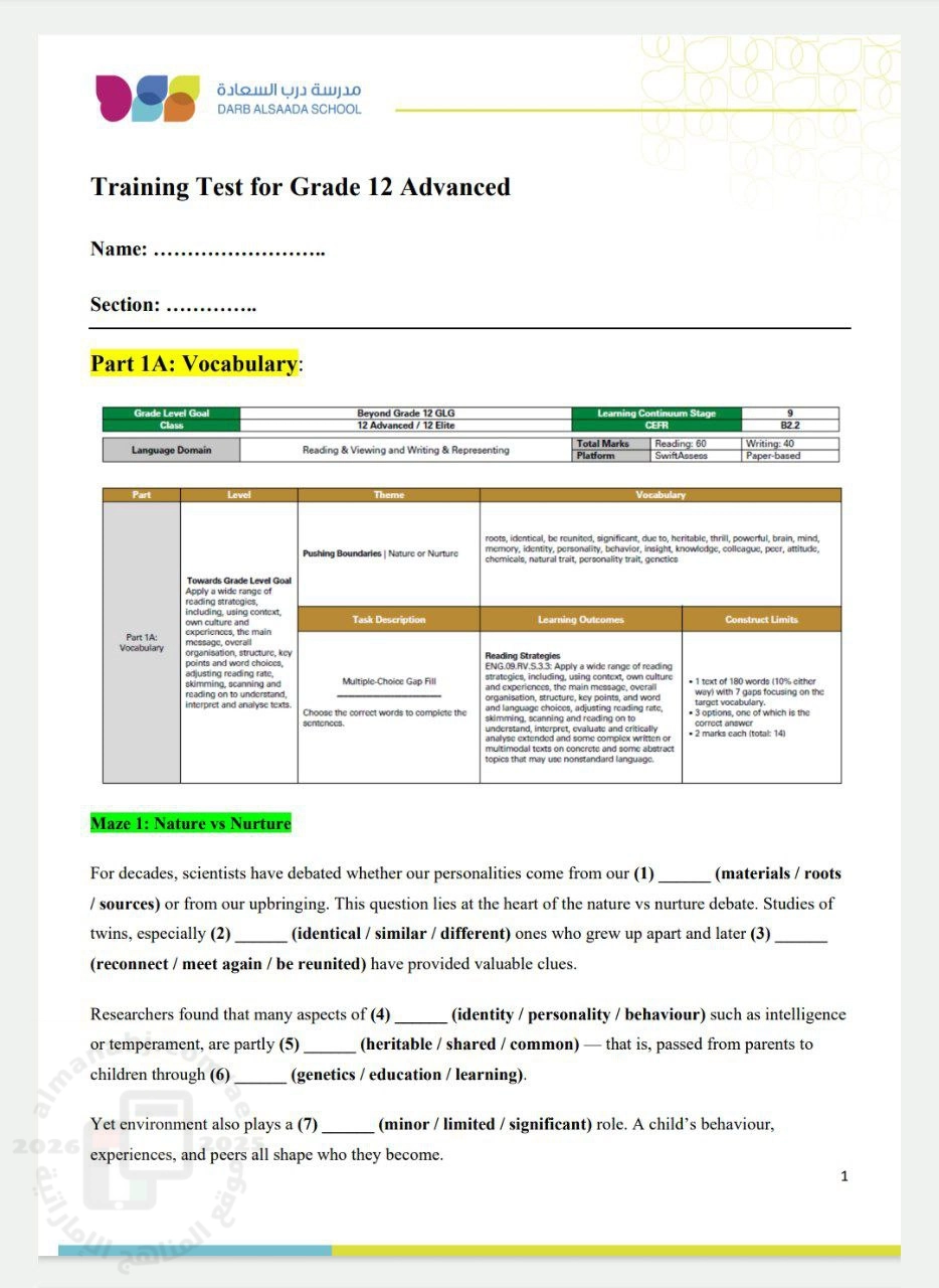 | كراسة تدريبية مراجعة وفق الهيكل الوزاري الجديد المسار المتقدم - إعداد: مدرسة درب السعادة | ||