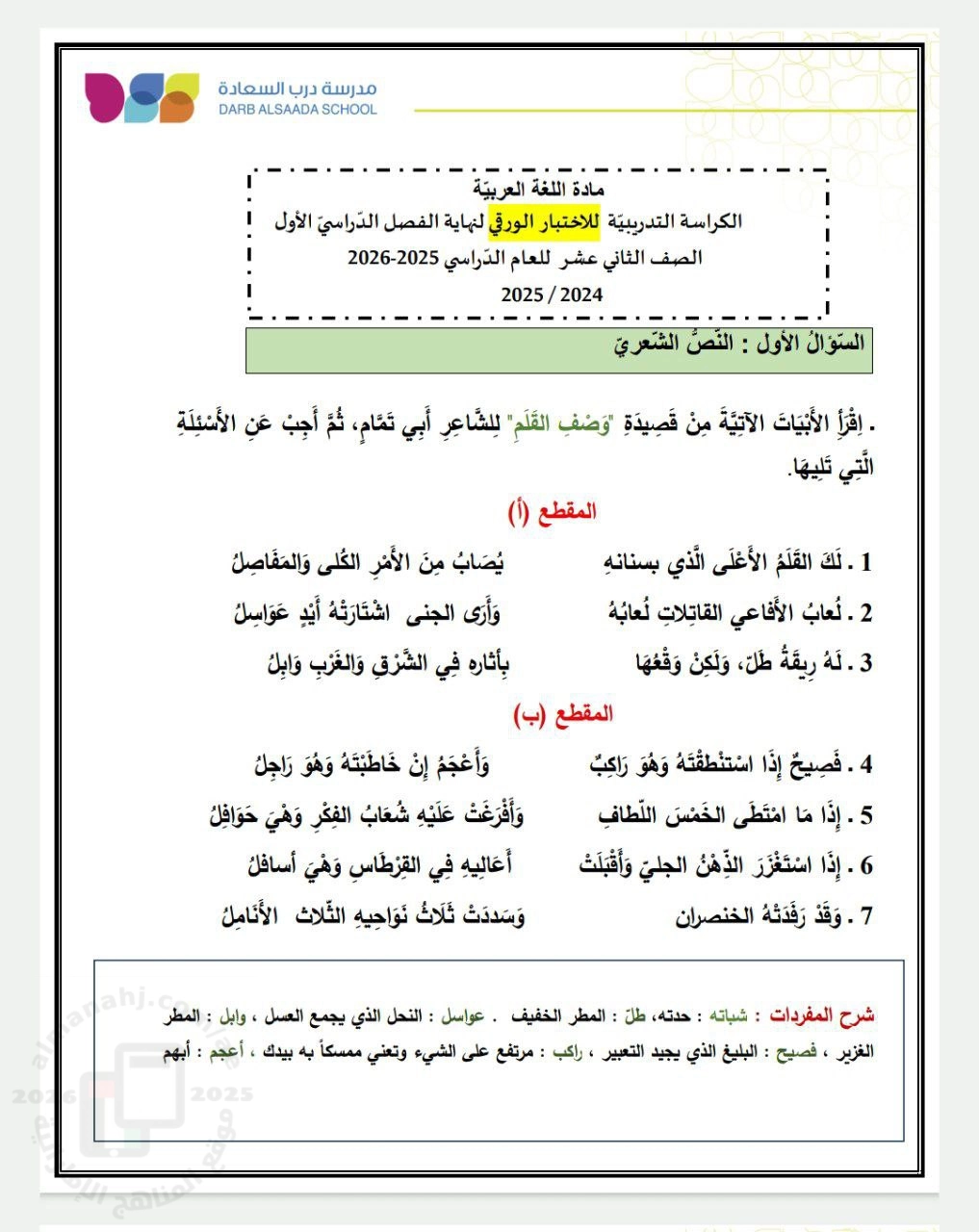 | كراسة تدريبية مراجعة وفق الهيكل الوزاري الجديد - إعداد: مدرسة درب السعادة | ||
