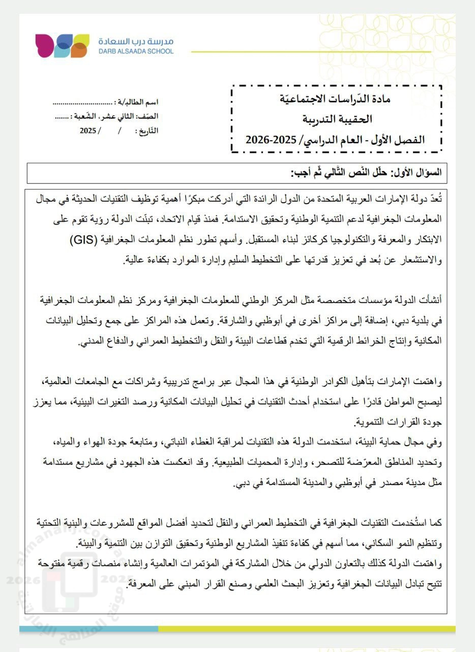 | أهلاً بكم جميعاً طلاباً ومدرسين وأهالي طلبة ومهتمين، في قسم دولة الإمارات ، نحن الآن في الفصل الأول من العام الدراسي 2025/2026 وتاريخ اليوم 2025/11/05 م | |