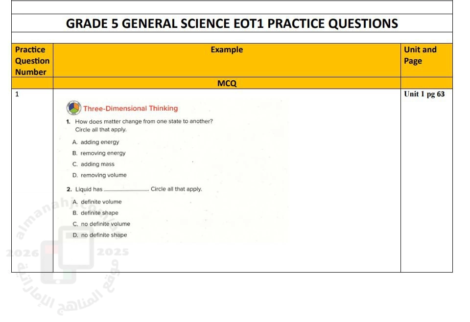 5. الصف الخامس, علوم, تجميعة أسئلة مراجعة وفق الهيكل الوزاري الجديد منهج انسباير
