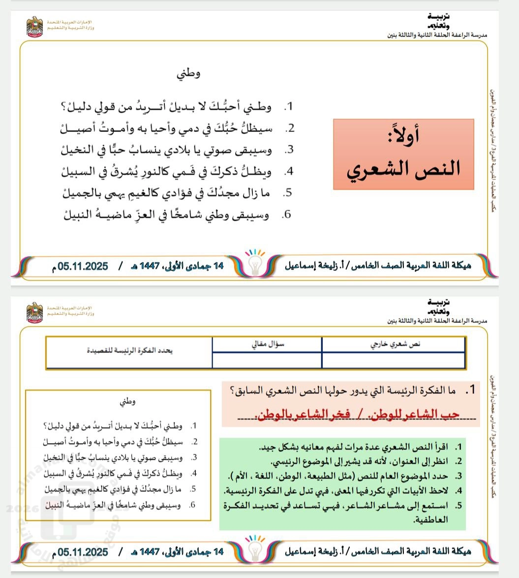 | أهلاً بكم جميعاً طلاباً ومدرسين وأهالي طلبة ومهتمين، في قسم دولة الإمارات ، نحن الآن في الفصل الأول من العام الدراسي 2025/2026 وتاريخ اليوم 2025/11/06 م | |