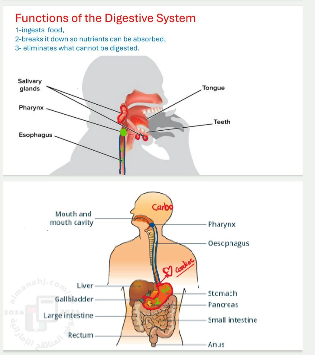 ملخص Digestive system الجهاز الهضمي متبوع بتدريبات منهج انسباير
