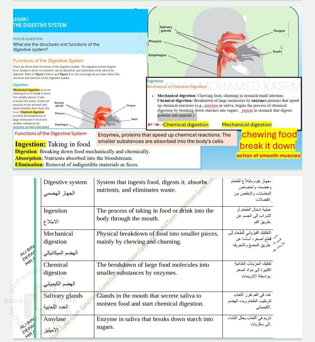 8. الصف الثاني عشر العام, علوم, ملخص Digestive system الجهاز الهضمي متبوع بتدريبات منهج انسباير