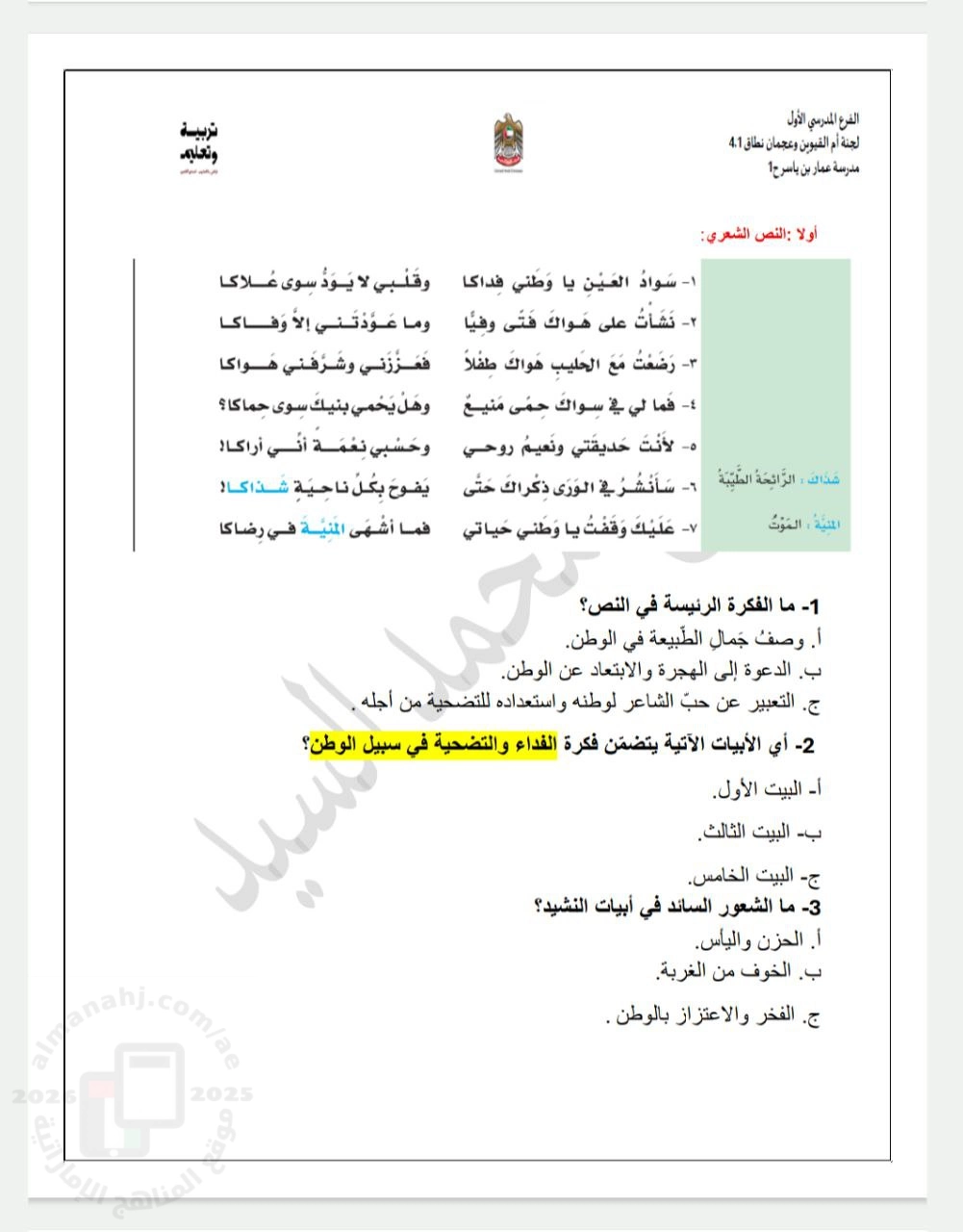 | تنويه: المناهج الإماراتية هو موقع مجاني وغير رسمي ولا يتطلب اشتراك لتحميل الملفات، لذلك يرجى عدم دفع أي مبلغ أو الاشتراك من أجل تحميل الملفات. | |