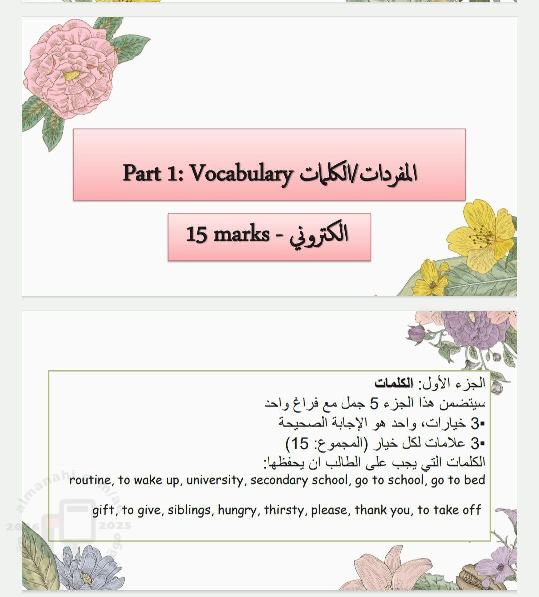 | السابق: حل نموذج اختبار تجريبي وفق الهيكل الوزاري الجديد | الملف الحالي: 36691 | التالي: ملخص قاعدة الصفات الملكية (Possessive Adjectives) |