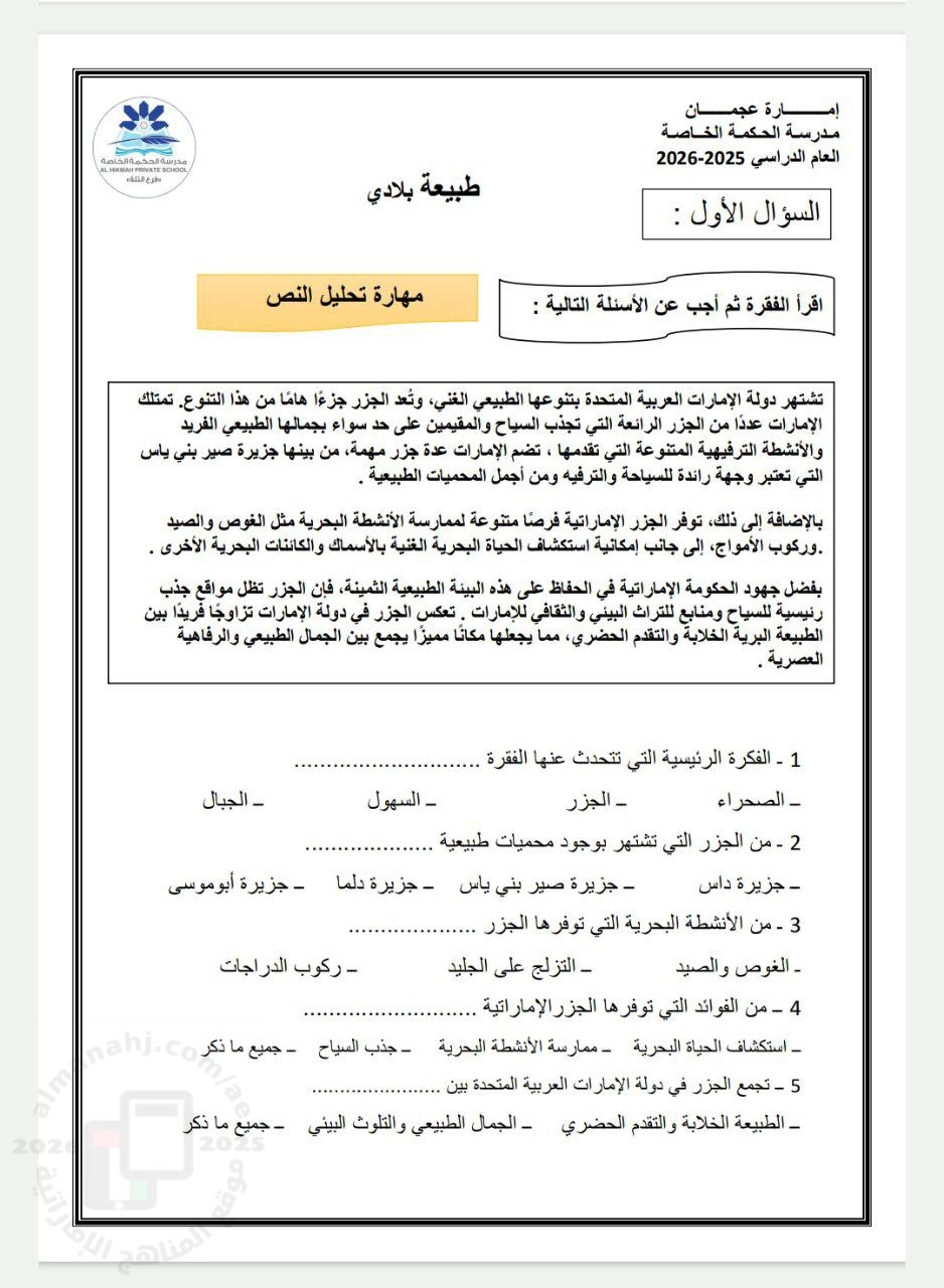 | أهلاً بكم جميعاً طلاباً ومدرسين وأهالي طلبة ومهتمين، في قسم دولة الإمارات ، نحن الآن في الفصل الأول من العام الدراسي 2025/2026 وتاريخ اليوم 2025/11/07 م | |
