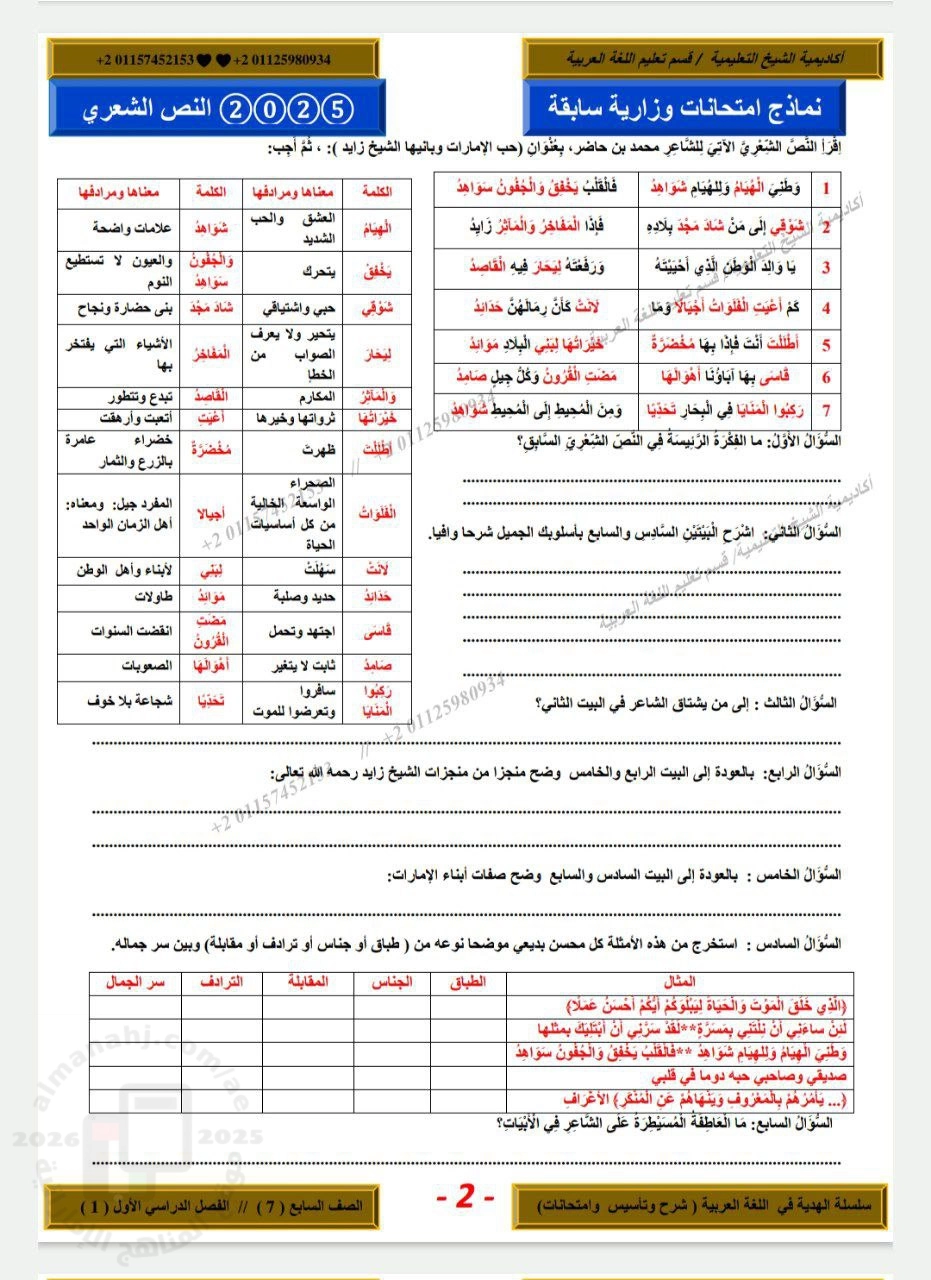 | بنك أسئلة امتحانات وزارية سابقة في النصوص الشعرية والسردية والمعلوماتية - إعداد: أكاديمية الشيخ التعليمية | ||