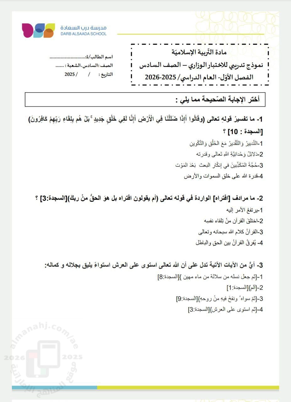 | أنت هنا: موقع المناهج ⇦ المناهج الإماراتية ⇦ الصف السادس ⇦ تربية اسلامية ⇦ الفصل الأول ⇦ مذكرات وبنوك |