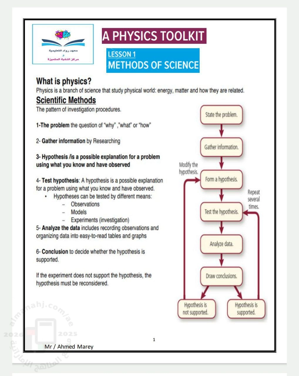 مراجعة نهائية شاملة وفق منهج انسباير, Ahmed Marey, الصف التاسع المتقدم, فيزياء, الفصل الأول, 2025-2026, منهج انجليزي - المناهج الإماراتية