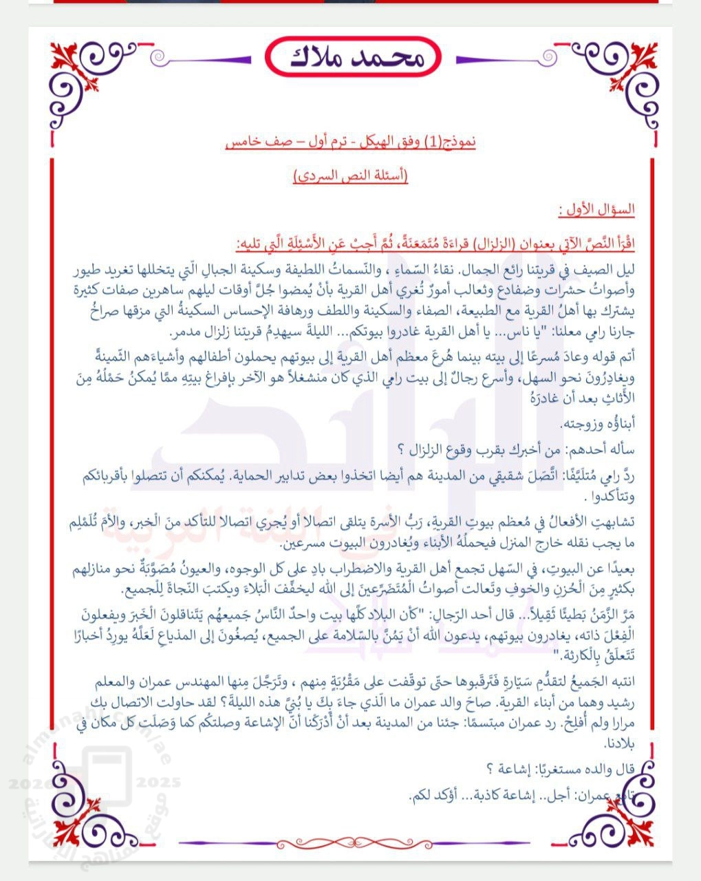 | هل تريد ملفات لمادة أخرى لقسم الصف الخامس, الفصل الأول ؟ اخترها |