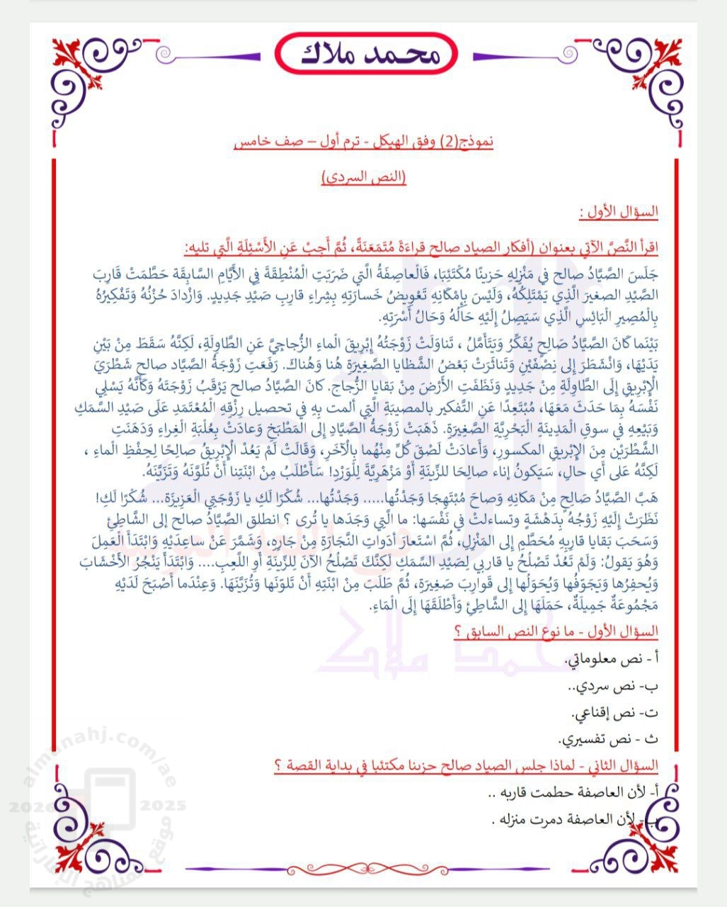 | نموذج تدريبي ثان وفق الهيكل الوزاري الجديد - إعداد: محمد ملاك | ||