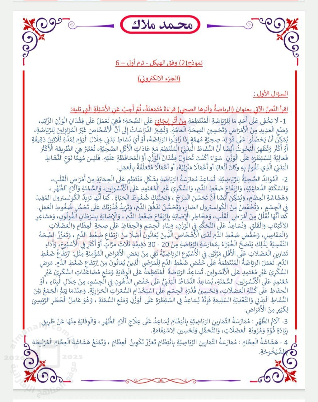 | نموذج تدريبي ثان وفق الهيكل الوزاري الجديد - إعداد: محمد ملاك | ||