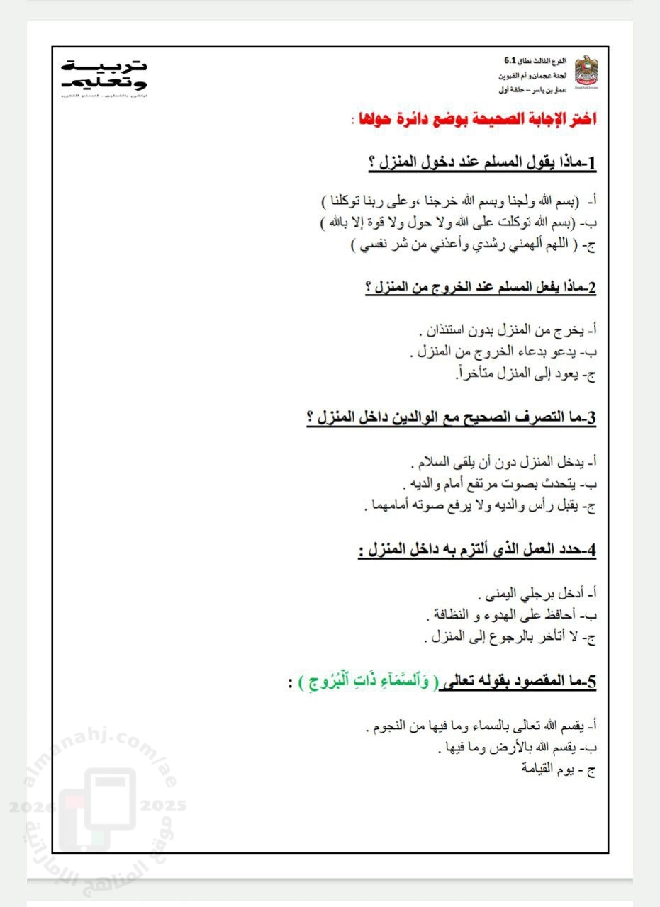 | تنويه: المناهج الإماراتية هو موقع مجاني وغير رسمي ولا يتطلب اشتراك لتحميل الملفات، لذلك يرجى عدم دفع أي مبلغ أو الاشتراك من أجل تحميل الملفات. | |