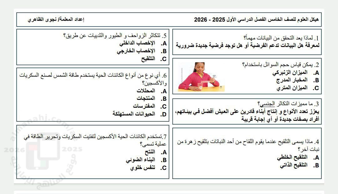 | 🆕 وزارة التربية والتعليم تكشف تفاصيل التقويم الأكاديمي 2025 – 2026 | اختبار نهاية الفصل لطلبة الصف الخامس التالي سيكون في مادة علوم بتاريخ 2025-11-20 - اضغط للحصول على ملفات مادة علوم واضغط هنا للحصول على ملفات هياكل مادة علوم |