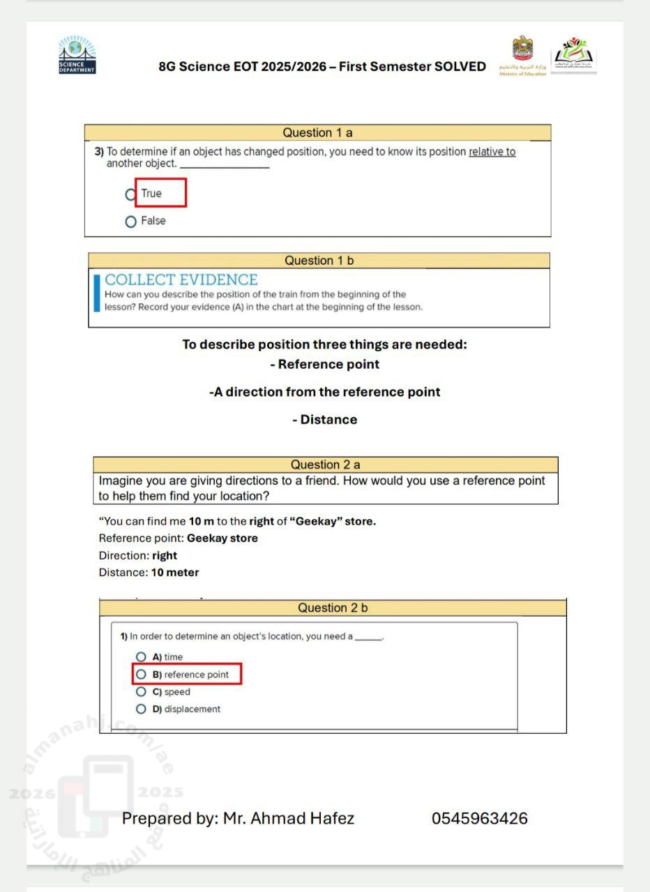5. الصف الثامن, علوم, مراجعة نهائية وفق الهيكل الوزاري منهج انسباير مع الإجابات