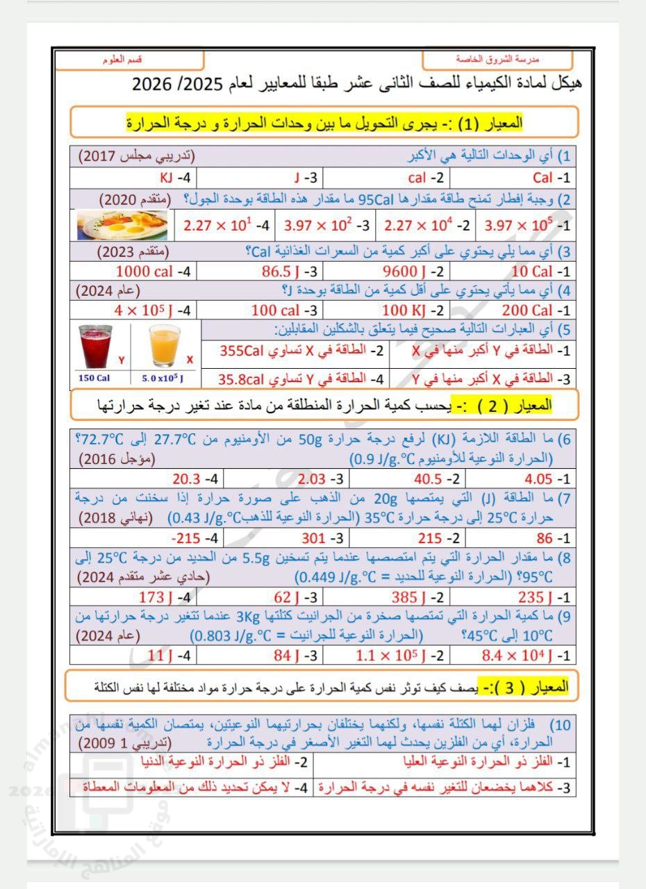 | تجميعة أسئلة وحدتي الطاقة والتغيرات الكيميائية وسرعة التفاعلات وفق الهيكل الوزاري الجديد منهج بريدج - إعداد: مدرسة الشروق الخاصة | ||