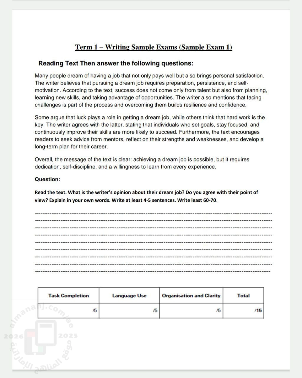 تم إيجاد الملف: مراجعة تدريبات Writing كتابة وفق الهيكل الوزاري الجديد المسار المتقدم