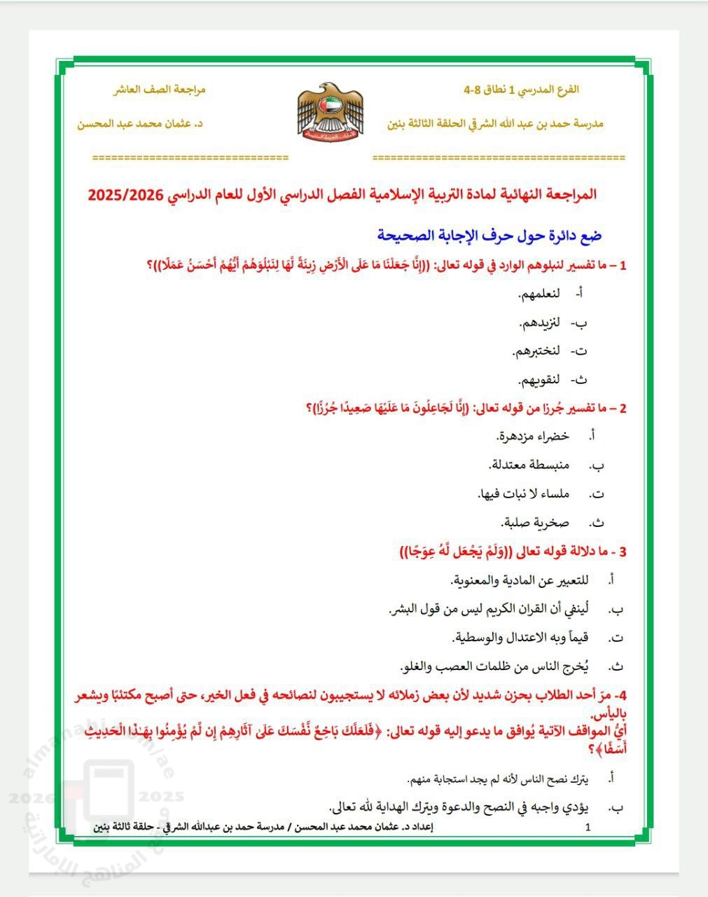 | أنت هنا: موقع المناهج ⇦ المناهج الإماراتية ⇦ الصف العاشر ⇦ تربية اسلامية ⇦ الفصل الأول ⇦ ملفات متنوعة |
