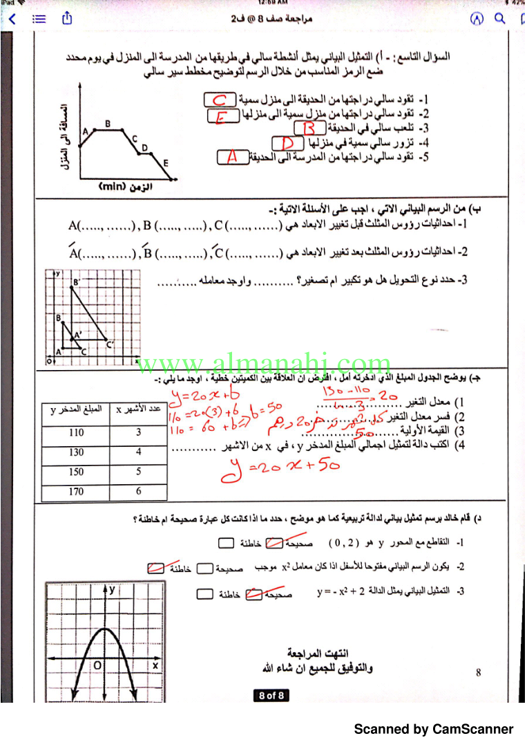 معلومات الملف: الصف الثامن, الفصل الثاني, رياضيات, 2017-2018, حل مراجعة رياضيات | |||
