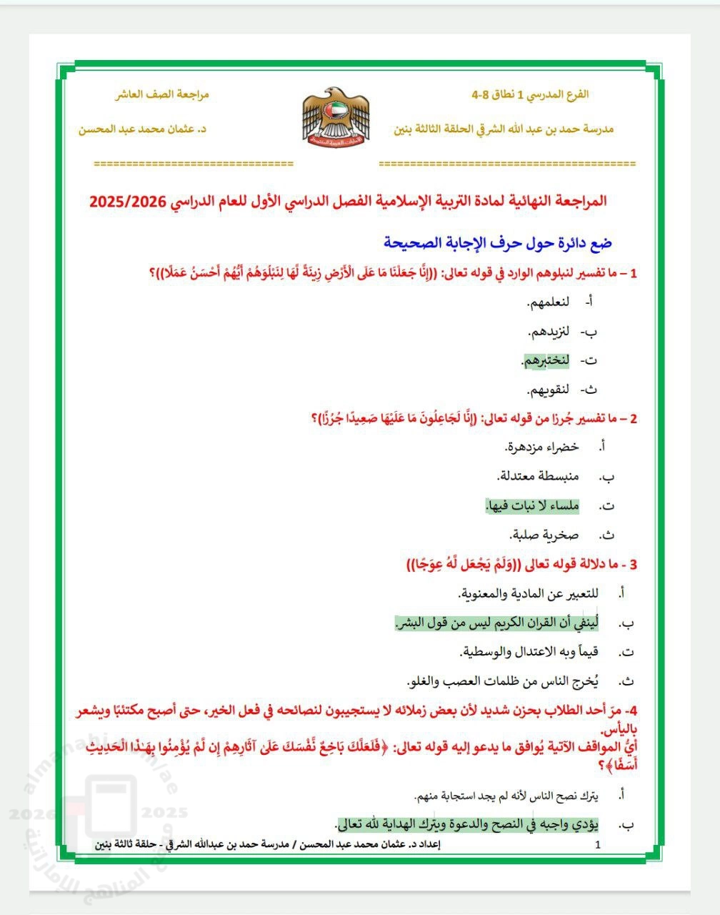 | تنويه: المناهج الإماراتية هو موقع مجاني وغير رسمي ولا يتطلب اشتراك لتحميل الملفات، لذلك يرجى عدم دفع أي مبلغ أو الاشتراك من أجل تحميل الملفات. | |