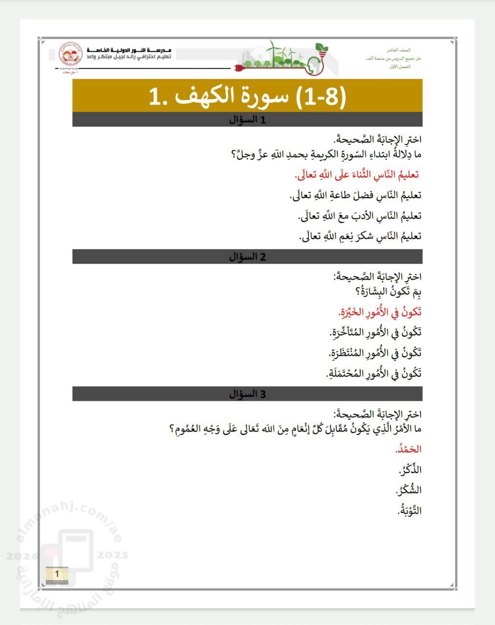 | أنت هنا: موقع المناهج ⇦ المناهج الإماراتية ⇦ الصف العاشر ⇦ تربية اسلامية ⇦ الفصل الأول ⇦ حلول |