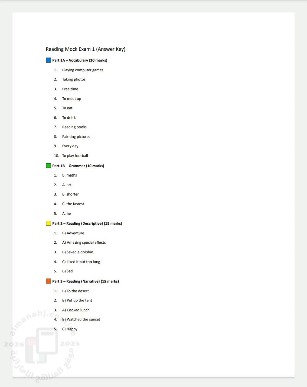 معلومات الملف: نموذج تدريبي Mock axam 1 للاختبار النهائي مع الحل