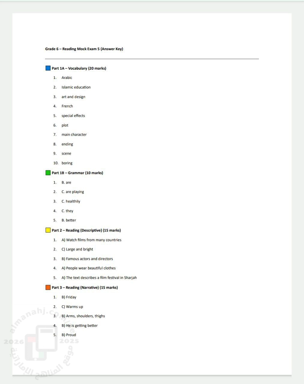 معلومات الملف: نموذج تدريبي Mock axam 5 للاختبار النهائي مع الحل
