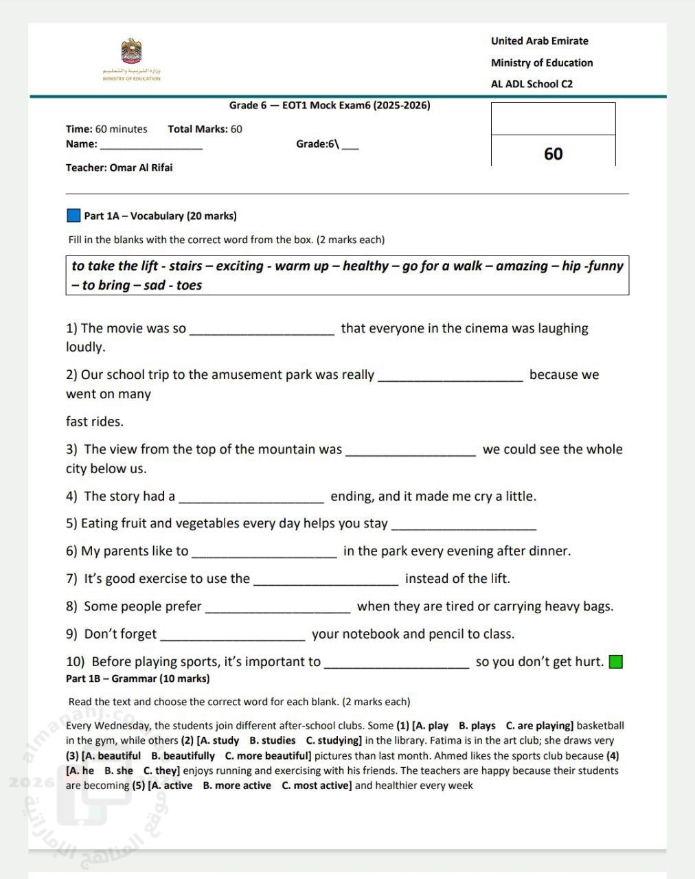 | نموذج تدريبي Mock axam 6 للاختبار النهائي - إعداد: Omar Al Rifai | ||