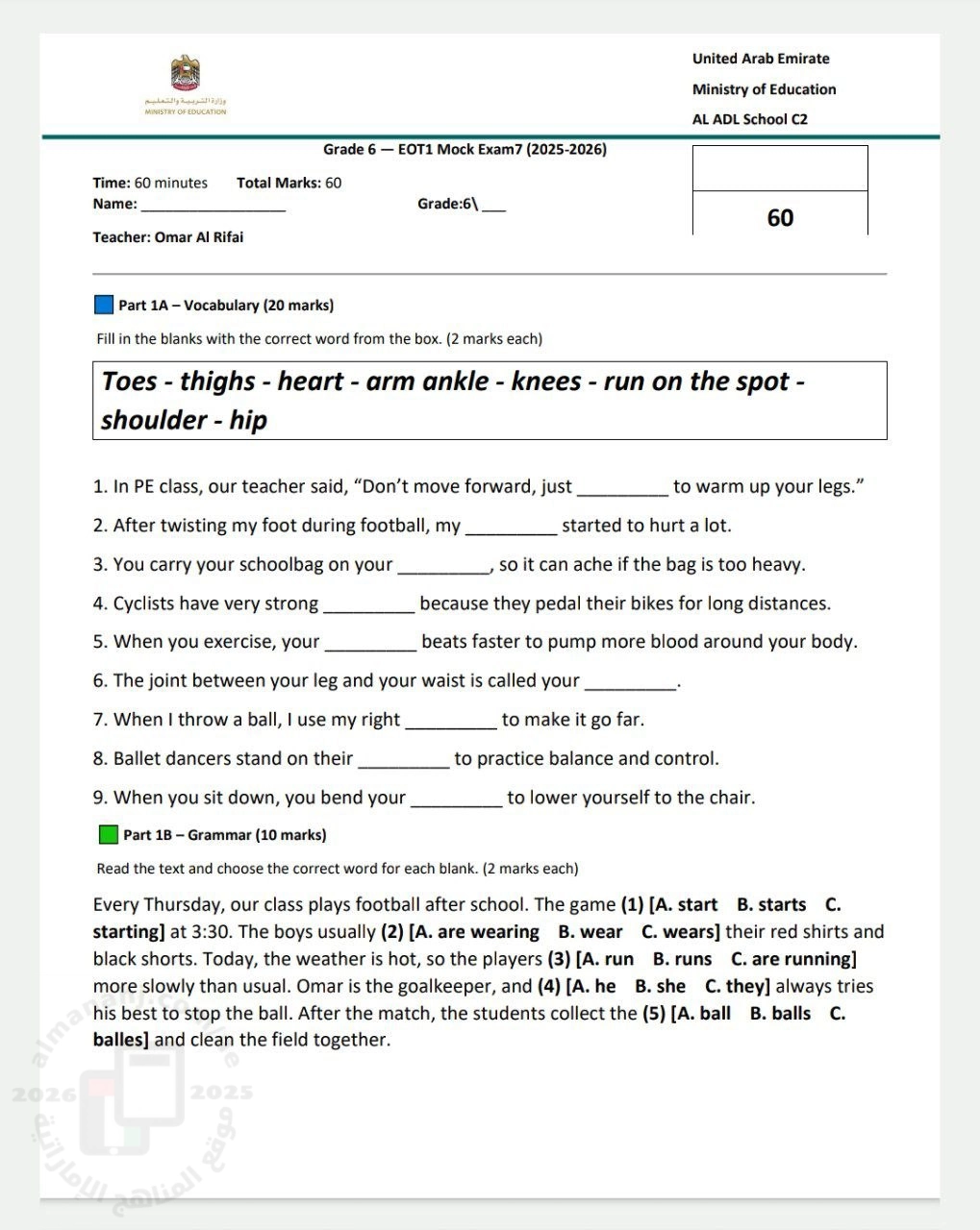| نموذج تدريبي Mock axam 7 للاختبار النهائي - إعداد: Omar Al Rifai | ||