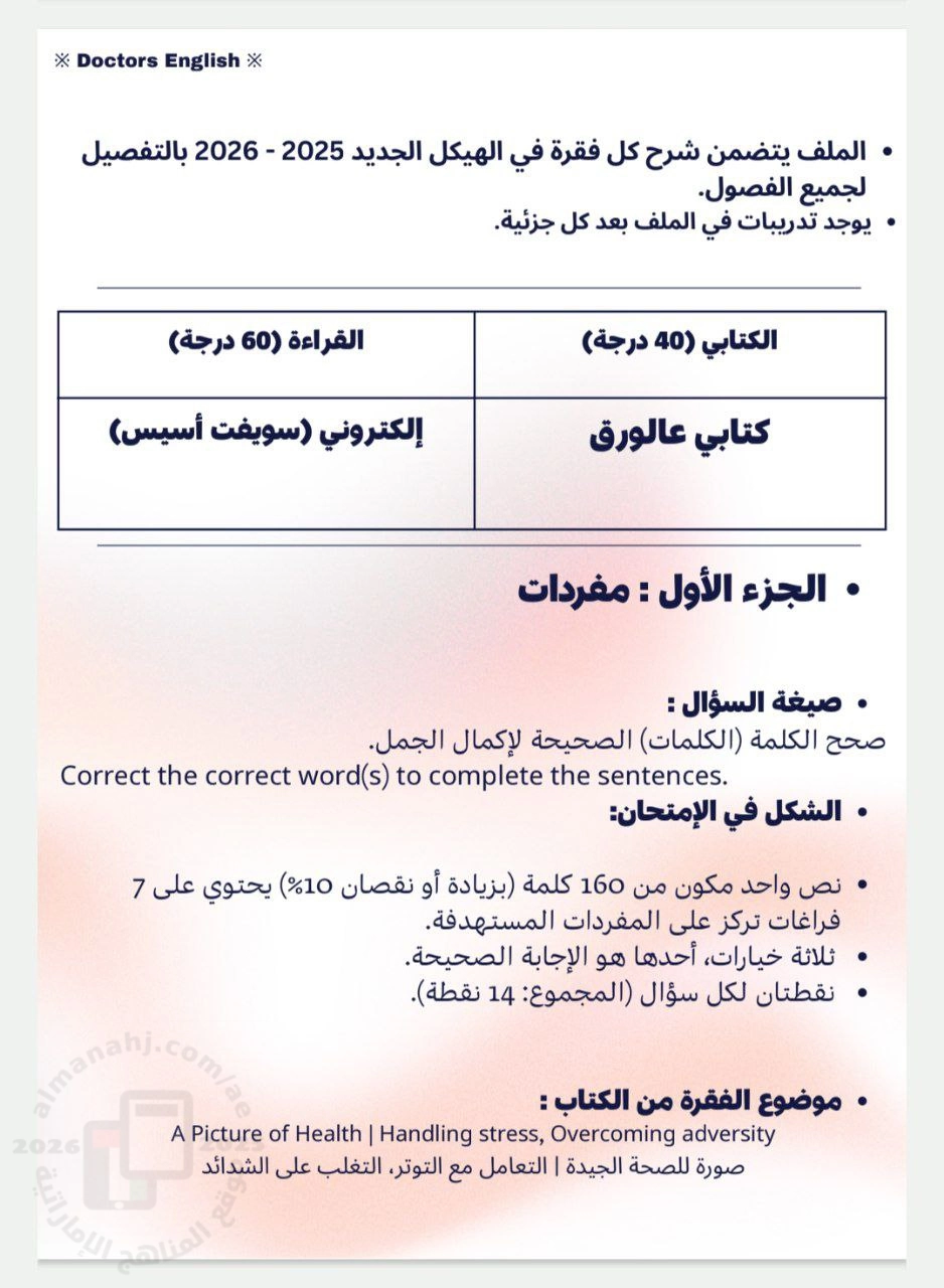 | الدليل الشامل شرح الهيكل الوزاري الجديد مع تدرببات متبوعة بالإجابات المسار العام - إعداد: Doctors English | |||