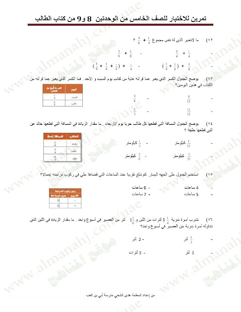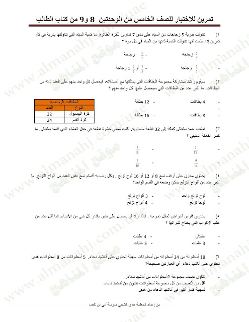 | الصف الخامس, الفصل الثاني, رياضيات, تمرينات للاختبار في الوحدتين 8و9 للتحميل اتبع الرابط التالي: http://aefiles.website/do.php?id=1161">http://aefiles.website/do.php?id=1161