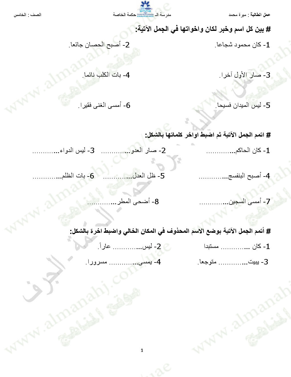 الصف الخامس, الفصل الثاني, لغة عربية, 2017-2018, تدريبات كان واخواتها للتحميل اتبع الرابط: http://aefiles.website/do.php?id=1163">http://aefiles.website/do.php?id=1163