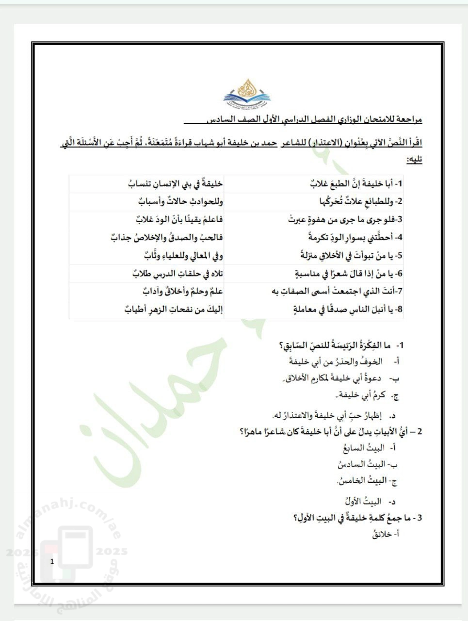 | تنويه: المناهج الإماراتية هو موقع مجاني وغير رسمي ولا يتطلب اشتراك لتحميل الملفات، لذلك يرجى عدم دفع أي مبلغ أو الاشتراك من أجل تحميل الملفات. | |