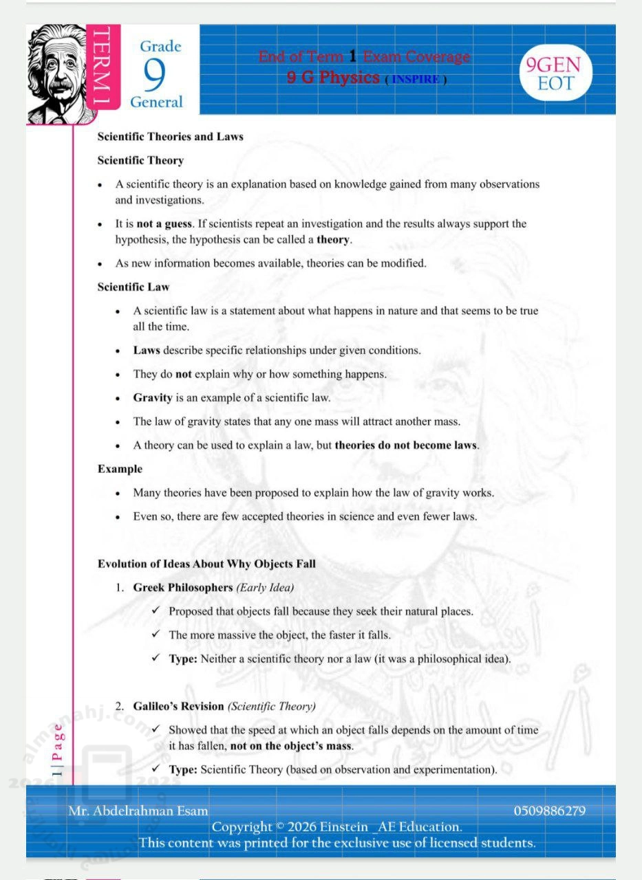 5. الصف التاسع العام, علوم, مراجعة نهائية شاملة وفق الهيكل الوزاري الجديد منهج انسباير