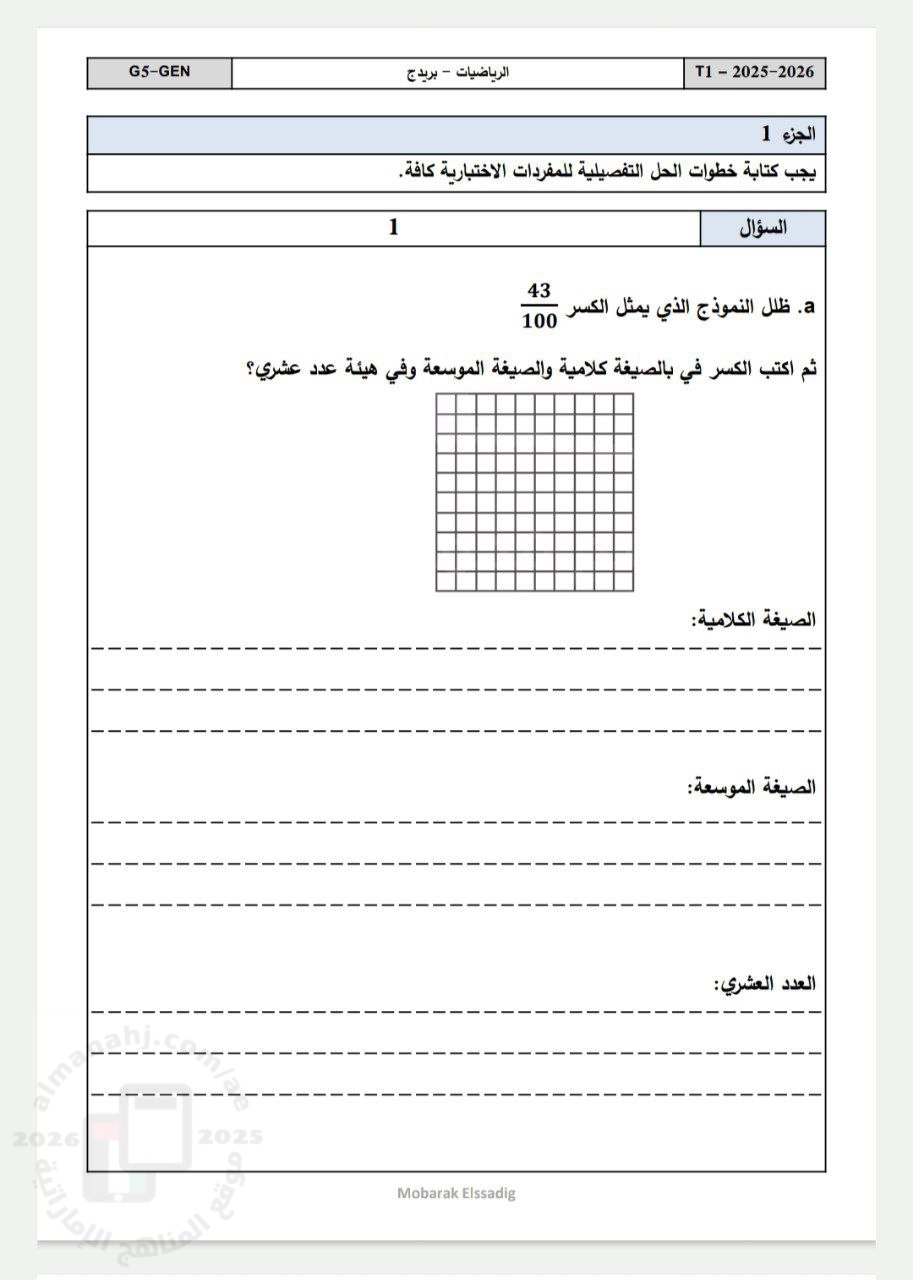 تم إيجاد الملف: أسئلة اختبار تجريبي وفق الهيكل الوزاري القسم الورقي منهج بريدج