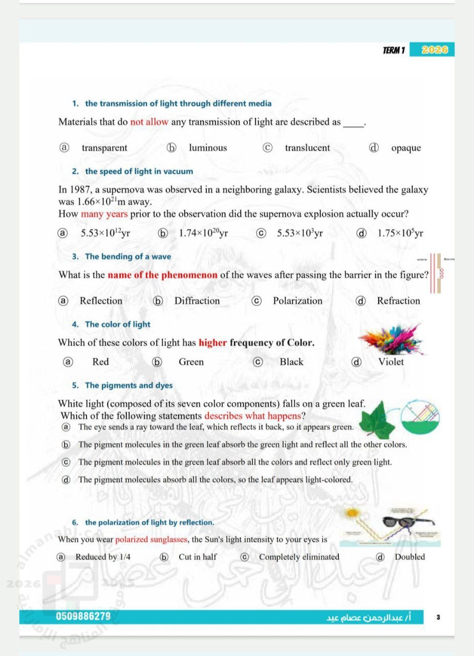 6. الصف الحادي عشر المتقدم, فيزياء, اختبار مطابق لمخرجات الهيكل الوزاري الجديد منهج انسباير القسم الالكتروني