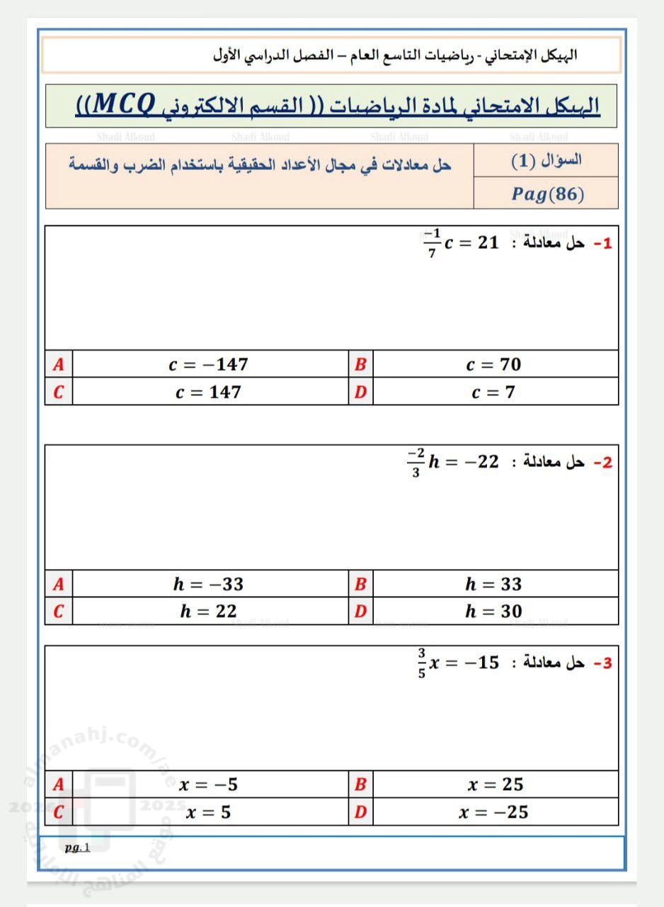 | السابق: أسئلة اختبار تجريبي وفق الهيكل الوزاري القسم الورقي منهج بريدج | الملف الحالي: 36952 | التالي: مراجعة عامة وفق الهيكل الوزاري الجديد مع نصوص تطبيقية (مذكرة الدفة) |