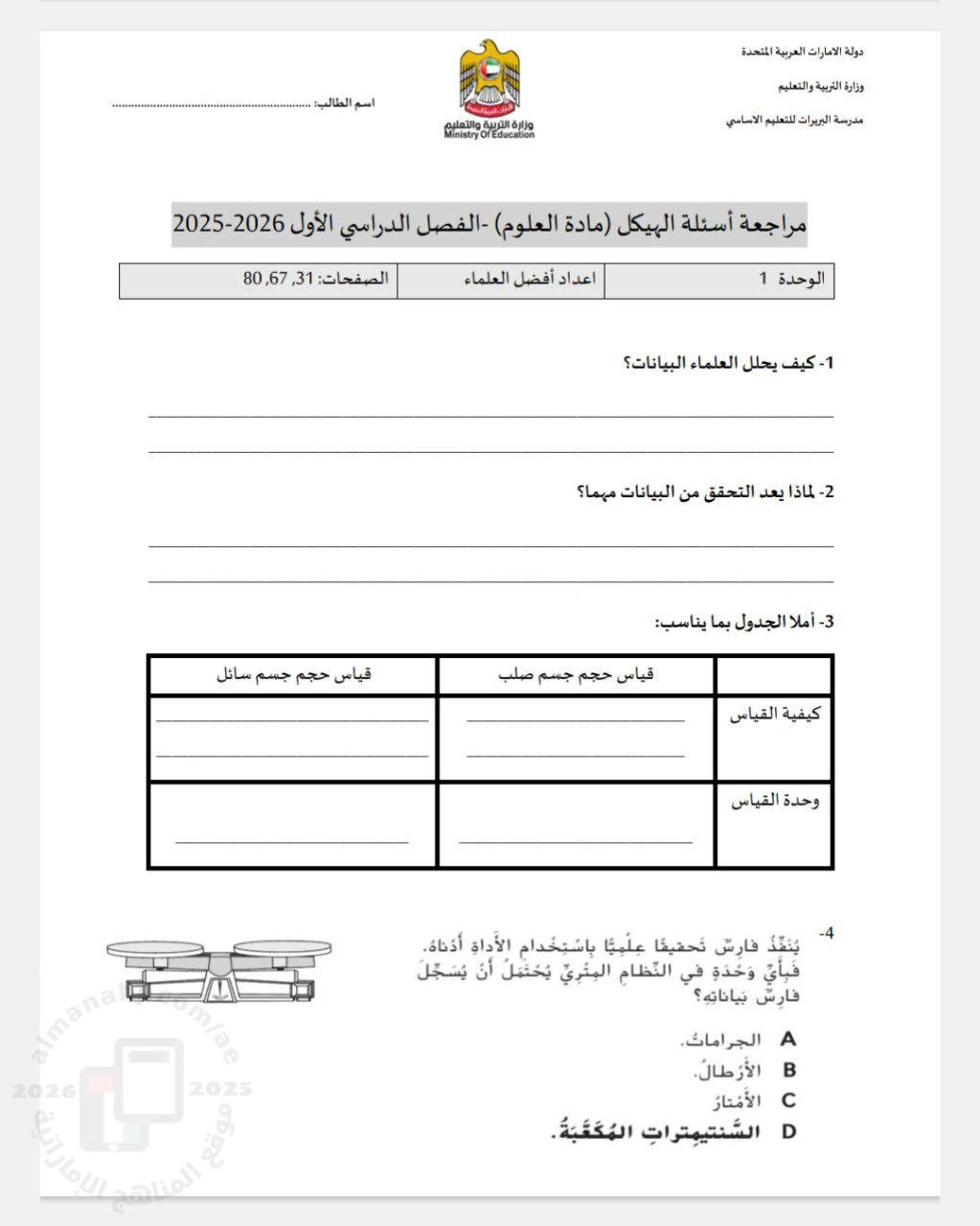 تم إيجاد الملف: مذكرة مراجعة أسئلة وفق الهيكل الوزاري الجديد منهج بريدج