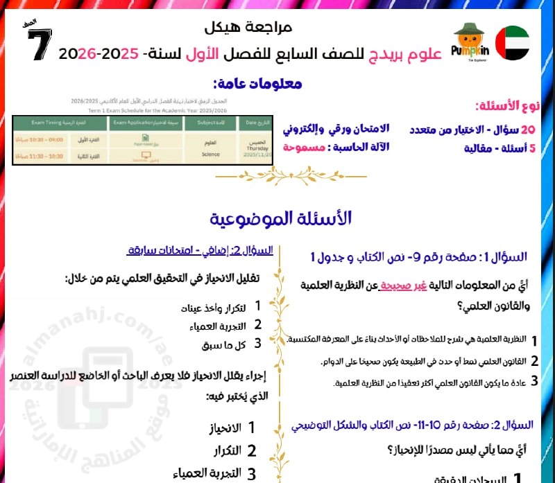 معلومات الملف: يَحتوي هذا الملف على مراجعة شاملة لهيكل منهج علوم بريدج الصف السابع – الفصل الأول للعام الدراسي 2025–2026، ويشمل نماذج من امتحانات سابقة وحل الأسئلة. كما تم تنظيم المحتوى بطريقة تساعد الطالب على استيعاب الهيكل بسهولة، مع توفير فيديو شرح كامل على القناة لضمان فهم أفضل لجميع أجزاء هيكل العلوم. | ||