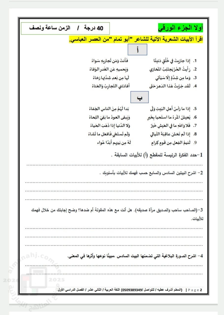 | تنويه: المناهج الإماراتية هو موقع مجاني وغير رسمي ولا يتطلب اشتراك لتحميل الملفات، لذلك يرجى عدم دفع أي مبلغ أو الاشتراك من أجل تحميل الملفات. | |
