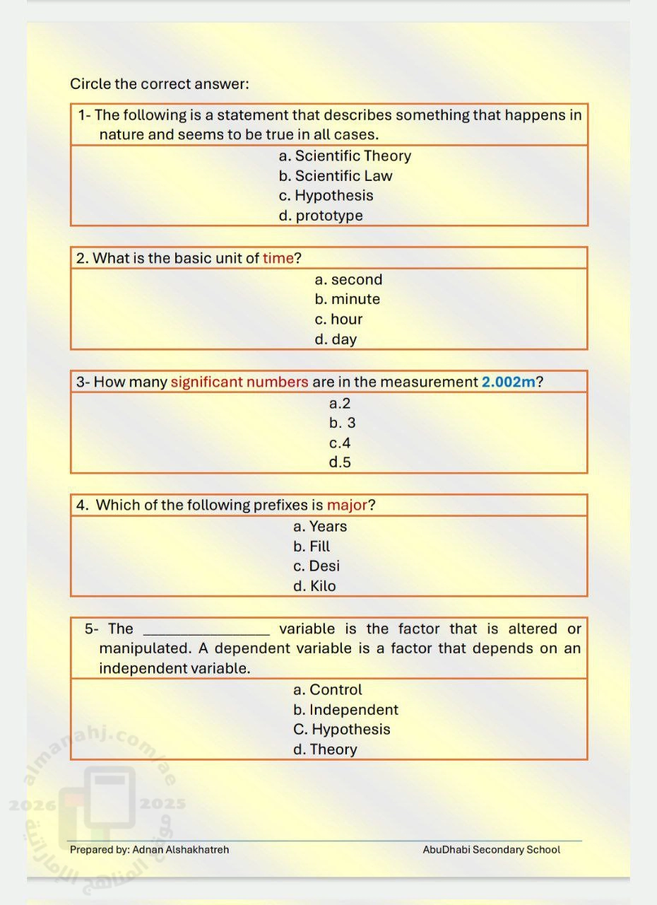 اختبار نهاية الفصل لطلبة الصف التاسع المتقدم التالي سيكون في مادة فيزياء بتاريخ 2025-11-20 - اضغط للحصول على ملفات مادة فيزياء واضغط هنا للحصول على ملفات هياكل مادة فيزياء