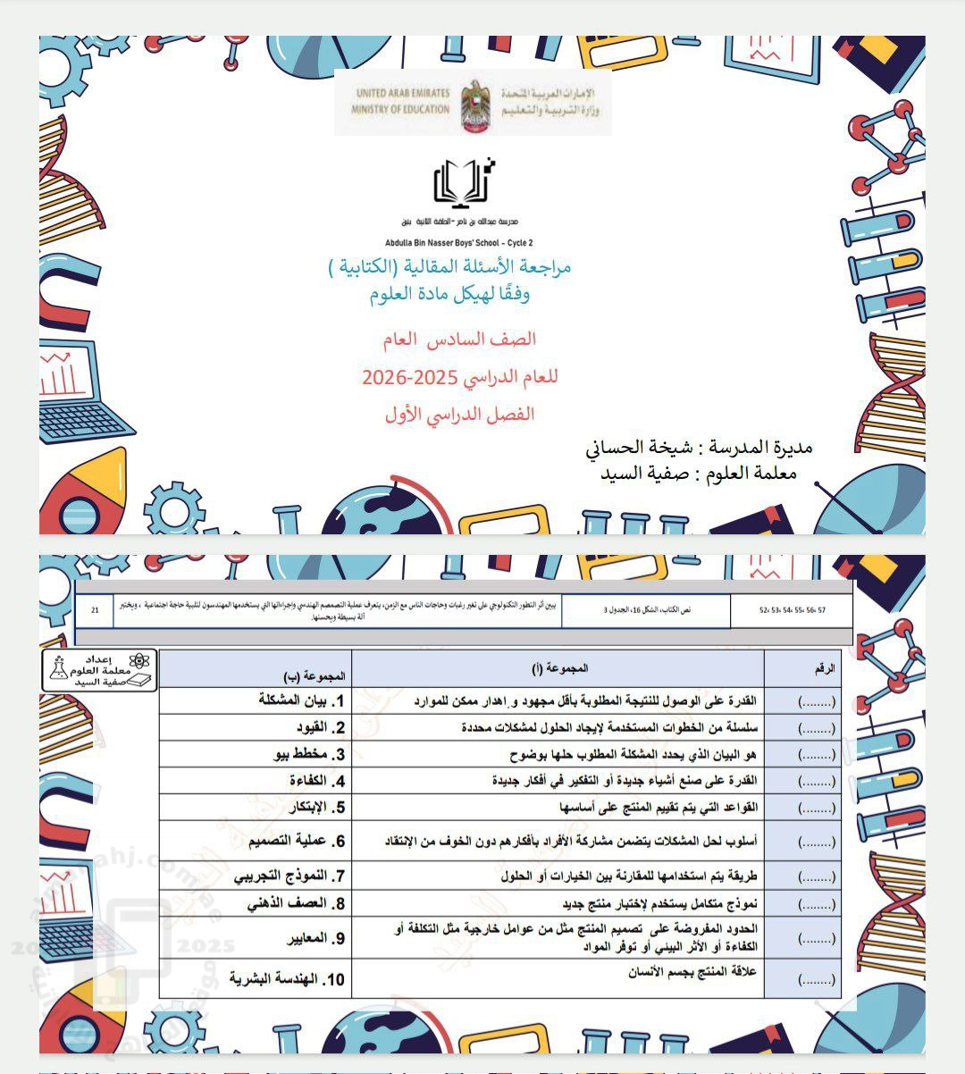 | 🆕 وزارة التربية والتعليم تكشف تفاصيل التقويم الأكاديمي 2025 – 2026 | اختبار نهاية الفصل لطلبة الصف السادس التالي سيكون في مادة علوم بتاريخ 2025-11-20 - اضغط للحصول على ملفات مادة علوم واضغط هنا للحصول على ملفات هياكل مادة علوم |